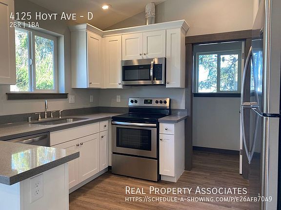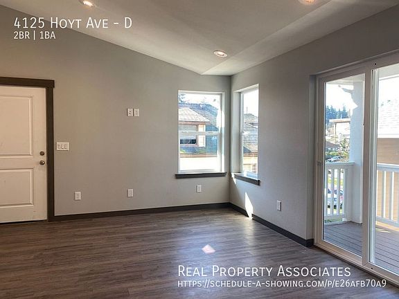 New Construction in the heart of down town Everett! 2nd floor unit features vaulted ceilings, wide plank floors, quartz counters & stainless steel appliances. Home has 2 large bedrooms, 1 bathroom and in unit full size laundry. Unit also comes with 2 tandum parking spots and will be fully gated. - Renter's legal liability insurance required and part of Benefit Package ($19.95 monthly) - $45 application fee per adult - $100 per person untility contribution - Professionally Managed by Real Property Associates Utility Contribution $100 Per Person For Water
