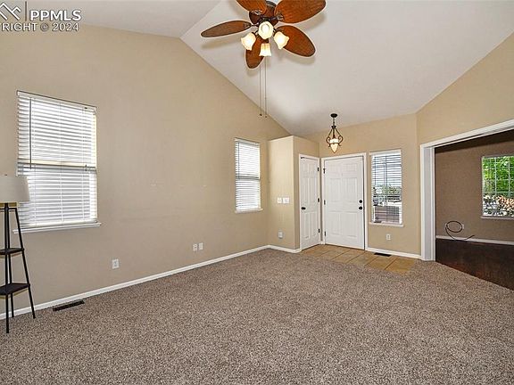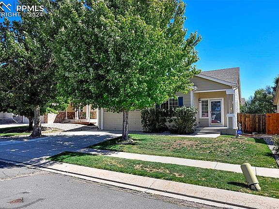 Welcome to this Charming 5 Bedroom, 3 Bath, Ranch Home with a Full Finished Basement. A vaulted ceiling in the Living Room greets you as you enter the home from the covered front porch. The Study at the front of the Home features an open doorway, ceiling fan and bookshelves. From the large eat in Kitchen you can walk out onto the Deck overlooking the rear yard. Fresh New Carpet has just been installed on the main level in the Living Room, Primary Bedroom, 2nd Bedroom, Hallway and the stairs to the Finished Basement. Open Railing in the Hallway leads you to the Primary Bedroom with an adjoining 4-piece bath and walk in closet along with another Bedroom and 3/4 Bath are on the main level. The Finished Basement features a Large Great Room along with 3 more Bedrooms, another Full Bath and spacious Laundry Room with Washer and Dryer. This home also has Central Air Conditioning to keep you comfortable during those warm summer days. Convenient location close to the First and Main Town Center, shopping, entertainment and both the Powers Blvd. and Marksheffel commuter corridors. We look forward to you visiting this Charming Ready to Move in Home today.