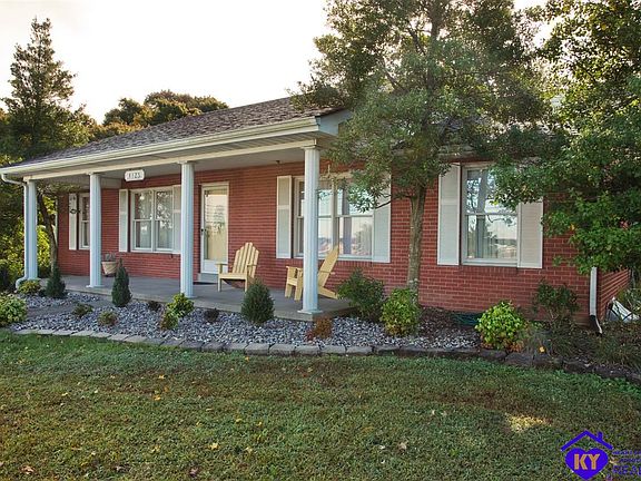 Very well maintained brick home on a spacious 1.75 acre lot conveniently located on US-62 just outside of Elizabethtown. The full walkout basement has drop tile ceiling with carpeting and kitchenette area. The basement also features a 1/2 bath with separate shower area in one corner. The detached brick garage is 34'x33' with overhead door, side entry door, concrete floor, 220 electric, wood stove, and built with 2"x6" walls just like the home. The large 1.75 acre lot is neatly maintained, has mature shade, and more than enough room for family activities and get-togethers. Please allow 24 hour notice for showings, masks are required for entry.