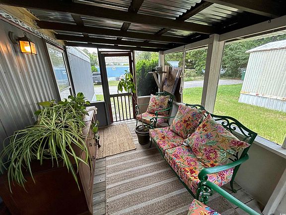 Welcome to the heart of Myrtle Beach! This 3 bedroom 2 bathroom single wide mobile home is located less than 1 mile to the beach and a quick drive to local restaurants, shopping, and entertainment! New improvements include new roof coating (2022), entirely new hvac system (2023), new back deck (2022), new windows and insulation in the master bedroom (2022), New LVP in the kitchen (2024), new roof on the front porch (2023), new hot water heater (2022), and a new 9 lite back door (2024). The home is being sold furnished which will include all furnishings in the pictures except the black table in the living room.