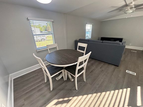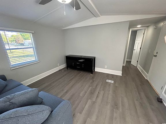 Welcome to this newly renovated single wide mobile home located less than a mile from the beach! Features of this home include but are not limited to new laminate flooring, remodeled bathrooms, new cabinets and solid surface countertops in the kitchen and bathrooms, a private master suite with a walk in closet, new underpinning, and a fresh coat of paint! Located in the heart of Myrtle Beach you are located minutes away from award winning dining, shopping, and a short golf cart ride away from the beach!