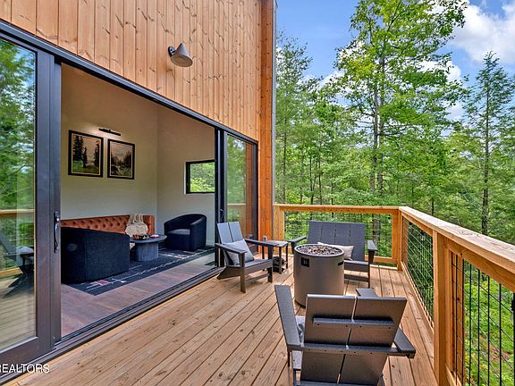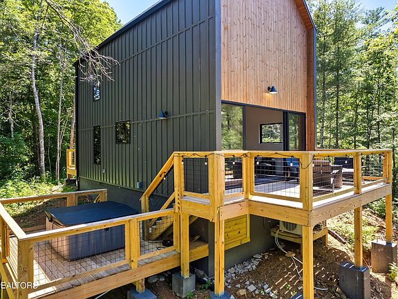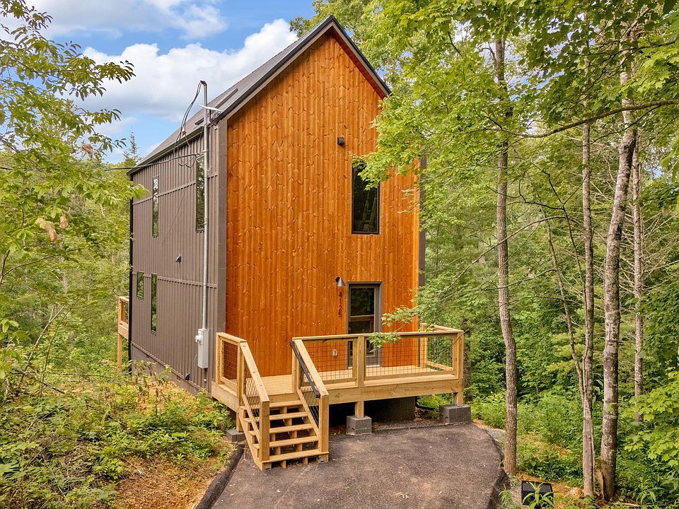 Incredible design in this privately situated, newly built Scandinavian cabin! Every aspect is meticulously thought out, blending comfort and serenity with a minimalist flair. Situated on nearly 4 acres, you'll enjoy fantastic privacy, yet an easy and scenic drive to all the nearby attractions. The massive Marvin sliding glass doors create an indoor/outdoor experience, and the tiered back deck allows separate spaces for enjoying the fire table and the hot tub. Upstairs is the spacious primary suite, with a vaulted ceiling and office nook, and a luxurious bathroom featuring a skylight over the shower! Hall bunks at the top of the stairs allow for extra sleeping, while on the main level is the second bedroom and another full bath. The kitchen is efficient yet has all the modern comforts, and the living room is flooded with light while taking in the wooded surroundings. This property features tons of upgrades, including thermally modified siding by Thermory on the front and back for low maintenance, a full house water filtration system and under sink drinking water system with tap, three zone HVAC, and Marvin windows and doors. Sure to be a desirable rental, rental projections exceed $75,000 annually! Add this beauty to your portfolio today!