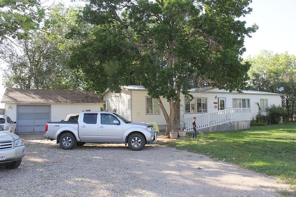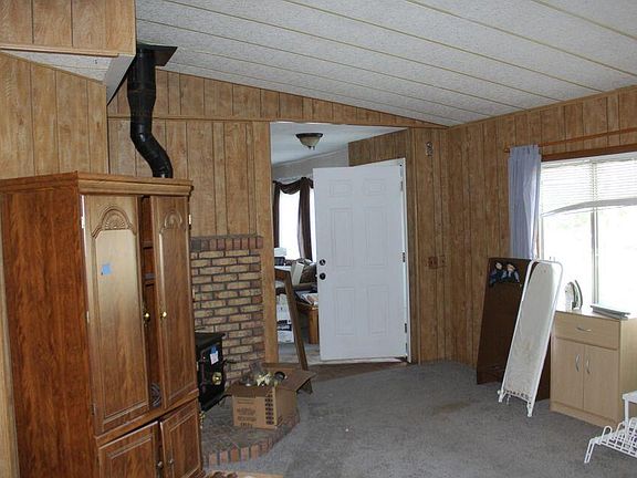 Manufactured home with deck and metal roof. Includes 624 sq/ft detached garage/storage area and 1600 sq/ft metal building with two large roll-up doors, on 1 acre of land. New gas water heater. Large tub & separate shower in master bath. Landscaped and partially fenced. Handicapped accessible ramp to front porch.