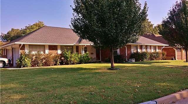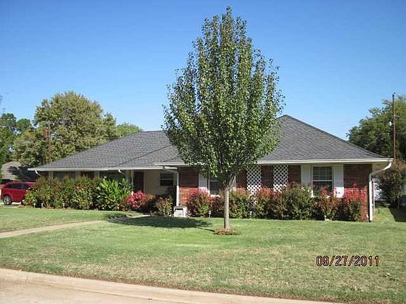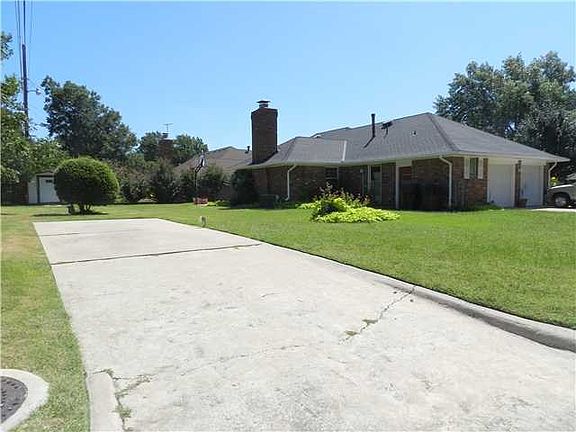 Great size home with large bedrooms. Home has 2 living w/a fireplace in den. Safe room in garage. Great corner lot w/ additional parking. 2nd drive with electrical outlet for RV. Huge back patio. Kitchen w/ dishwasher, smooth top range & wall oven. Large inside utility.Underground Sprinklers. New carpet in Master bedroom. New H2O tank installed in October 2014. Great potential. Seller would like to sell as-is.