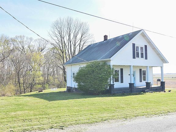 Welcome to your slice of peaceful country life in the heart of 47720 & Posey Co! South Terrace and North Posey Schools. This charming 2-bedroom, 1-bath home located on 1.56 acres with gorgeous views of wide-open fields and a tree-lined backyard—you’ll feel the calm the minute you pull in. Additionally, the seller is offering a new roof, adding to the value and appeal of this home. Just across the road from a local orchard, you can literally smell the fresh fruit in the air. Enjoy your morning coffee or unwind in the evenings on the spacious 20x5 covered front porch, the perfect spot to soak in the country views. Inside, you’ll find a cozy living room with a sweet electric fireplace surrounded by white subway tile and a handy shelf for your TV. The kitchen is efficient and functional with a buffet cabinet, range/oven, and dishwasher—just what you need for easy meals. There’s one main floor bedroom with hardwood flooring and a nice closet, plus a full bath with a tub/shower combo, vanity, and a linen closet. A side entry features a closet that could be used as a pantry. Upstairs offers a second bedroom that’s just the right size and a great bonus space—ideal for a game room, sleepovers, a home office or additional third bedroom—with a walk-in closet. The basement is more cellar-style, but it’s a great space for protection in stormy weather. The 2.5-car detached garage has a concrete floor and plenty of room for your vehicles, projects, or hobbies. There’s even a basketball court and a perfect spot for bonfires under the stars. Seller notes include a new field bed in 2023, flooring bedrooms, some plumbing updated and replacement windows. Looking for a starter home with space to roam and that hard-to-find country charm? This one's calling your name!
