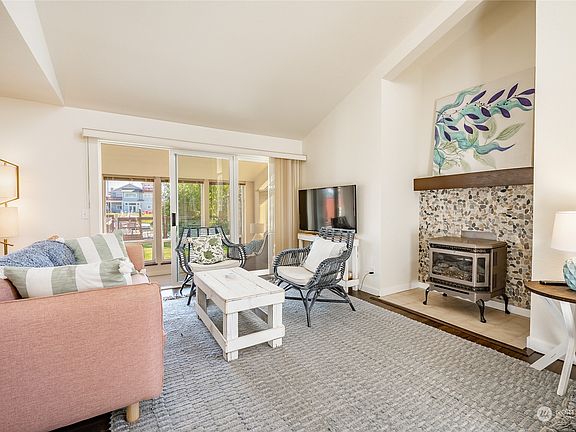 Step out to your own private 40’ boat dock & sail to the enchanting San Juan Islands, plus crabbing & fishing adventures! Enjoy grilling salmon on your deck or sipping your morning coffee in the cozy sunroom, or Primary Suite deck. "Turnkey" waterfront home is thoughtfully updated. Beautiful kitchen w/ SS appls, granite counters, stylish tile floors. The living room features a vaulted ceiling, charming FP. Upstairs are 2 Primary Suites + laundry room. Deck areas perfect for entertaining. RV parking. Boat dock offers potential rental income of $200-$300 per month. Optional SP Amenities: Marina, Pool, Golf, Tennis. Experience the beauty, tranquility of the waterfront lifestyle at Sandy Point Shores. This is more than a home—it's a retreat.