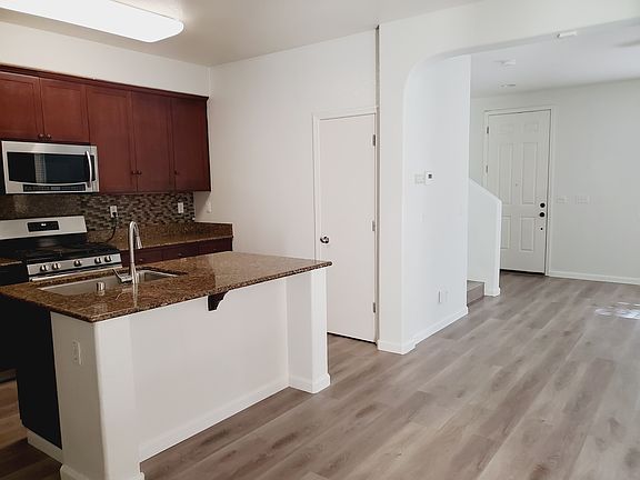 PERFECT FOR HOME OFFICE...this 4BR 2.5BAS 1698 sq ft floor plan. The downstairs living area is open with natural light & includes: an open kitchen design with gas stove, refrigerator, microwave & an island & a half bath. A private side yard/patio offers outdoor entertaining & relaxation. Upstairs features all new flooring & all 4 Bedrooms with a large Master Suite with a walk-in closet, a laundry room with washer & dryer. The roomy 2 car garage has storage units and there is additional street parking for guests. This home is located near a large neighborhood park, Costco & schools. 10 minutes to downtown or the airport and easy access to the freeways.
