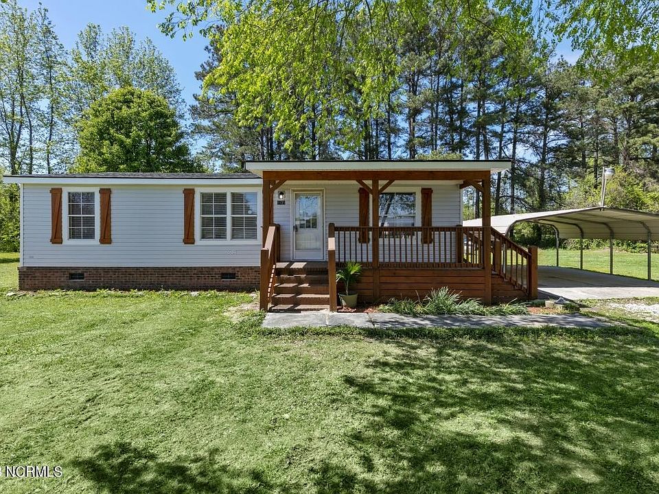 Updated Double Wide with Open Floor Plan. Great Room opens to Dining Area and Kitchen with new Range. From Kitchen, step to covered back porch. Master Suite with Walk-in Closet, Soaking Tub and separate Shower. 2 more Guest Rooms along with another Full Bath.
