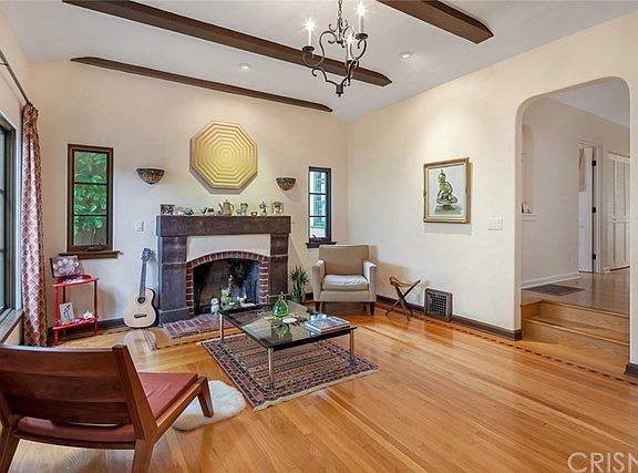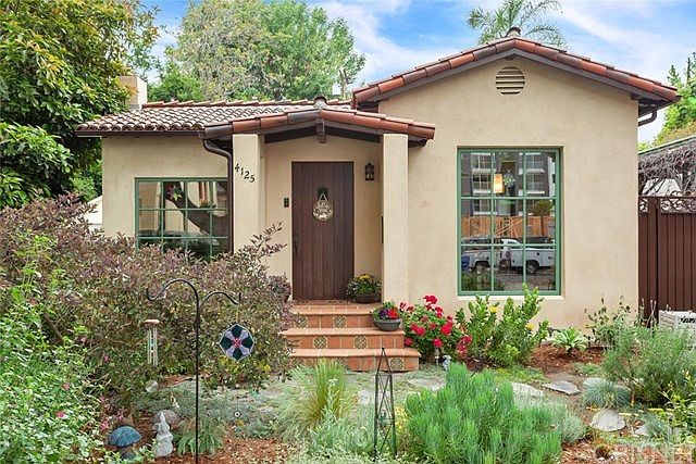 Located in Studio City's sought after neighborhood "Footbridge Square", this character rich upgraded Spanish gem is absolutely charming! Lovely foyer opens to an expansive Living room with fireplace and a raised wood beam ceiling - it overlooks the inviting front patio. The formal dining room adjoins the bright kitchen with granite counters and garden window. The spacious family room is warm & welcoming. Master suite has French doors that open to the grassy backyard & patio. Remodeled Master bath has quartz like counters, dual vanity, large soaking tub & a separate shower. Two additional bedrooms and a remodeled hall bath complete the home. Features include: gleaming hardwood floors, high coved ceilings and newer windows throughout. Lush greenery, large grassy yard, and beautiful back patio create an ideal place to relax and unwind in the private backyard. Located in the highly desirable Carpenter School District.