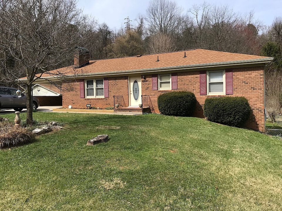 Brick ranch home with carport and large driveway that was recently resurfaced. Oversized lot that backs up to the Blue Ridge parkway. Yard is partially fenced. Property also has 2 car detached garage. House has a living room with a stone fireplace with gas logs, dining area and kitchen, 3 bedrooms and 1 and 1/2 baths on the main level. All rooms on main level were recently painted. The lower level has a large family room with wood stove and doors that open to patio. Lower level also has a bedroom, full bath/laundry room combination,workshop area and lots of storage. Gutter guards were installed recently on house and garage. House has forced air gas heat and central A/C.