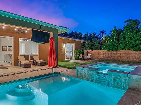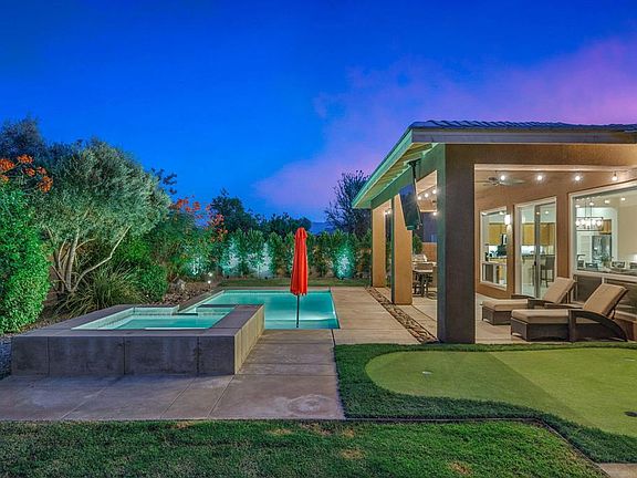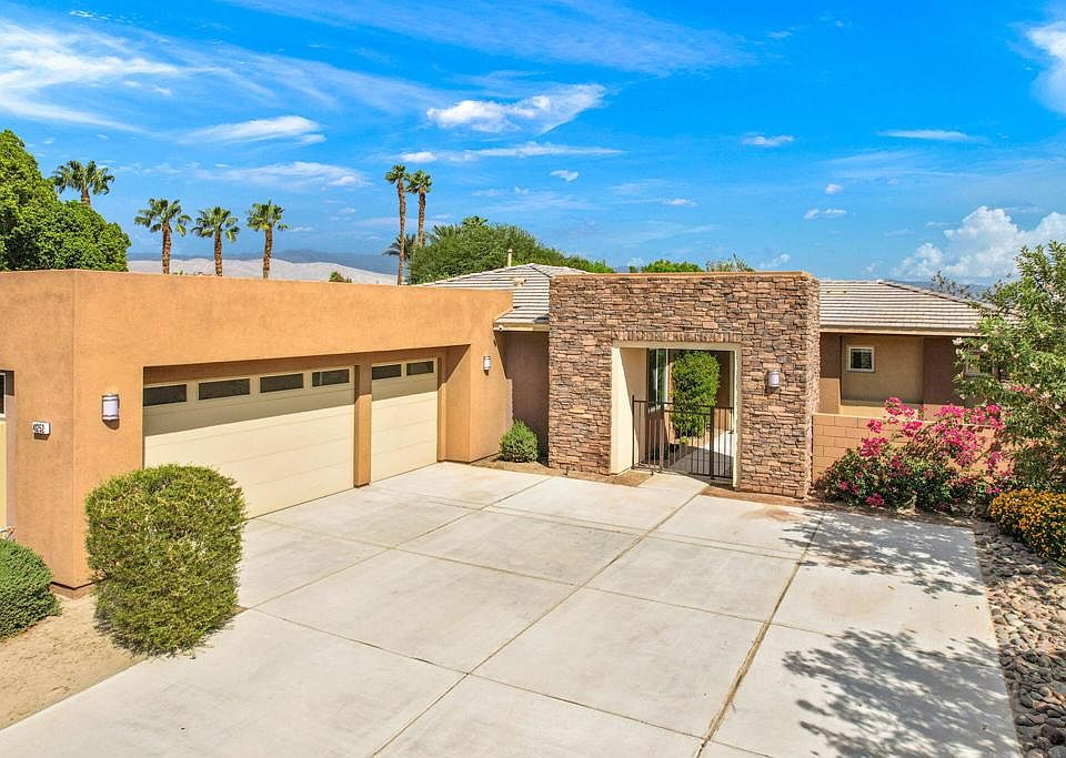 AVAILABLE October 15, 2025. ALL appliances included. Built by GHA Homes this 3 bedroom, 2.5 bath home is private, spacious and clean. With 1,973 sf of living with 3 car garage and BIG driveway with room for RV parking. Spacious backyard fully surrounded by block wall featuring a private pool, spa, BBQ, misters, putting green and mature landscaping. Enjoy the open concept spacious living and dining area with windows looking out to the covered patio and sparkling pool and spa. Slider doors to easily access the patio for indoor-outdoor living. The gourmet kitchen features granite countertops, stainless steel appliances, dual oven, walk-in pantry and tons of storage space for all your kitchen needs. There is also a built-in office area with a desk to 'work from home'. The master bedroom suite features dual vanities, separate shower and tub, a large walk-in closet and sliding doors leading to the patio and pool area. The two guest bedrooms are spacious and adjacent from each other with the large guest bathroom just down the hall. In addition, powder bathroom for guests just off the living area. Laundry room fully equipped with newer washer/dryer plus a sink. Newer AC installed in 2022 and this property is on IID (Imperial Irrigation District) for lower utility bills! Newer paint and carpet. Centrally located in Bermuda Dunes with easy access to I-10 and nearby shops and restaurants.