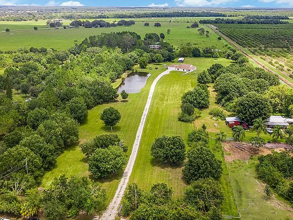 The one you've been waiting on out East! Enjoy this private 8 acre property with gated entry, a pond, 3 stall barn, and a great floor-plan! The Home features extra large bedrooms and closets! An open floor-plan with high ceilings and tile throughout! The Master has lots of natural light, large walk-in closet and access to the Lanai! The Kitchen has newer Stainless Steel Appliances with french doors to the Lanai. Off the Living area you'll find a bonus room/office space with built ins. This home is equipped with clear hurricane shutters and wired up for a Generator. Out back you'll love the view of your pasture with the 3 stall barn overlooking the orange grove. Perfect area to add your pool out back! Large Garage is a perfect workshop! This property offers the ultimate privacy to do as you please! A few added perks- the Bad Boy 60" Mower, Spreader, Lumber for fencing, Generator, Electric Couches, and Dining Table will all convey with the property! Don't miss out on the best deal in East Manatee!