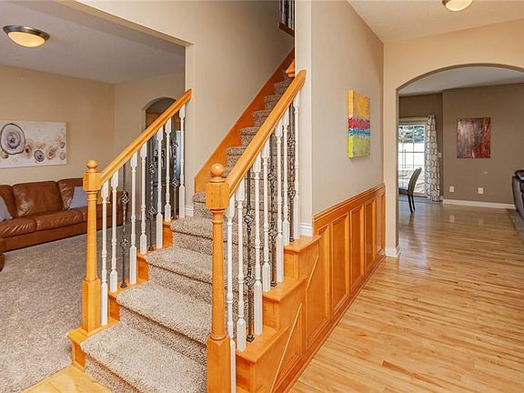 What a beautiful home in a fantastic location! Located directly across the street from the sought-after Webster Elementary school, this 4 bedroom 2 story is the epitome of move-in ready! Step inside and enjoy this warm and inviting home. A sitting room/flex space is immediately off to the left upon entering. Lots of possibilities on how to use this space. The main level of the home is large, and the kitchen and living areas connect so the whole family can spend time together. The kitchen offers plenty of cabinet space, along with a pantry. Extra features include granite counters, hardwood floors, stainless appliances and an island. The laundry room is large and located on the main level. Upstairs you will find all 4 bedrooms. The master is very large, and the en suite has a separate tower and tub. The finished basement is the perfect spot to hang out, and the wet bar is a showstopper! The yard is fenced and feels private thanks to a berm. Updates include furnace, AC and more!!!