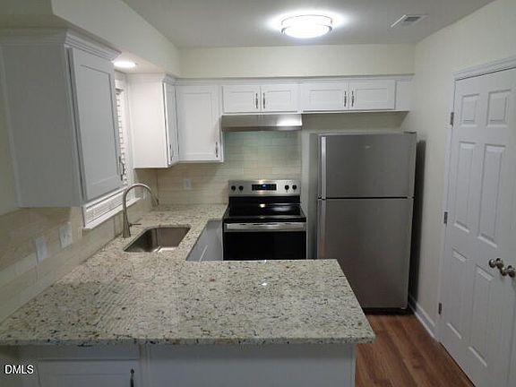 Available NOW! TOTALLY NEW inside! Updated 3 Bedroom, 2.5 bath duplex in the perfect location off of Hwy 70 West! Convenient to all that Raleigh has to offer! Kitchen has new stainless steel appliances, granite counters, new white cabinets with plenty of cabinet space. Dining Room, Living room. Spacious master and 2 secondary bedrooms have new carpet. Laundry room. Patio with storage room overlooks private back yard, Driveway parking. If you value nature and privacy, this duplex is for YOU, Near RDU, Crabtree Valley and all Triangle cities and towns via nearby I-540.