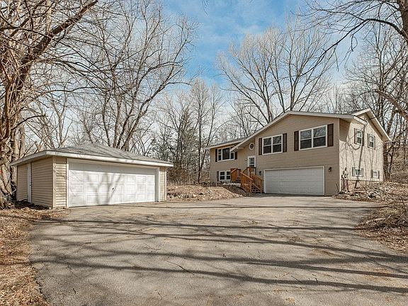 Welcome to this move-in-ready home on a wooded acreage lot! This home has been stylishly updated and won't disappoint. There is new flooring, light fixtures, and fresh paint throughout. The kitchen has been generously updated with new cabinets, new countertops, new backsplash, and new appliances. All 3 bathrooms are updated as well, including the private bathroom off the primary bedroom. Enjoy the woods around you from the many windows or get outside and enjoy! There is plenty of room for parking and hobbies in the 2 car attached garage plus 2 car detached garage! Bring your boxes and unpack.