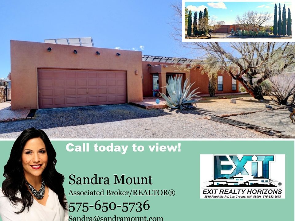 Quit throwing money away! This Solar powered home saves money on utility costs while other home owners are dreading the next electric cost increase. There is also the energy efficient Master Cool unit, only 2 yrs old. This Southwest 3 bedroom 2 bath home on over 3/4 acre lot, exceeds the rock walls that encompasses this lovely home & generous amount of open patio surrounding the in ground pool. Open terrain directly behind rock wall suggests possible expansion. The open floorplan of living/dining area inside provides ample room for china cabinets & large gatherings. Kitchen was updated w/ beautiful cabinets that include 'lazy susans', deep pot drawers & granite counters. You will love the two updated bathrooms. One w/granite counters, 2 copper sinks, jetted tub & custom designed decorative tile work. The master w/custom tile countertop & sink, shower stall w/dual showerheads. Room to park RV next to driveway. Extra room makes a great office or flex area. Located near MMC, NMSU, Golf course & 1-10 interchange