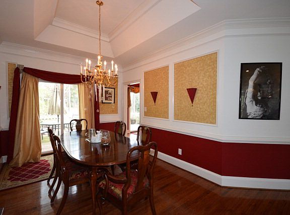 Beautifully updated home in golf course community. Located on quiet cul-de-sac with a lovely spacious backyard. Heavy molding throughout. Living room has hardwood floors, vaulted ceiling and brick masonry fireplace. Adjoining dining room has hardwood floors, beautifully appointed walls and trey ceiling. In the eat-in-kitchen you will find lots of cabinet and counter space. Tile backsplash and upgraded gas stove, wall oven, microwave and dishwasher. Open to the kitchen is the family room with hardwood floors, wainscoting, a second fireplace with gas logs and vaulted ceiling. The owner's bedroom has a large walk-in closet. Owner's bath has spacious tiled shower, separated jetted tub, and double vanity. A Jack-n-Jill bath connects two of the remaining three bedrooms. Off of the kitchen you will find a large deck leading out to a beautiful private backyard. Convenient location and great schools.