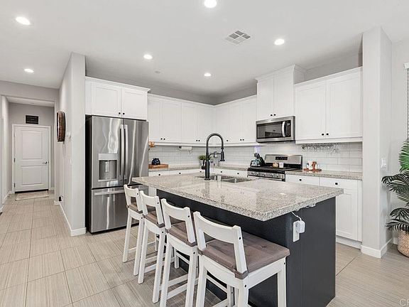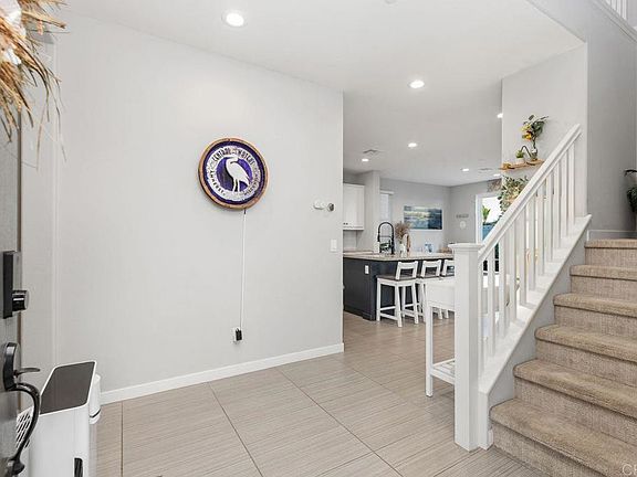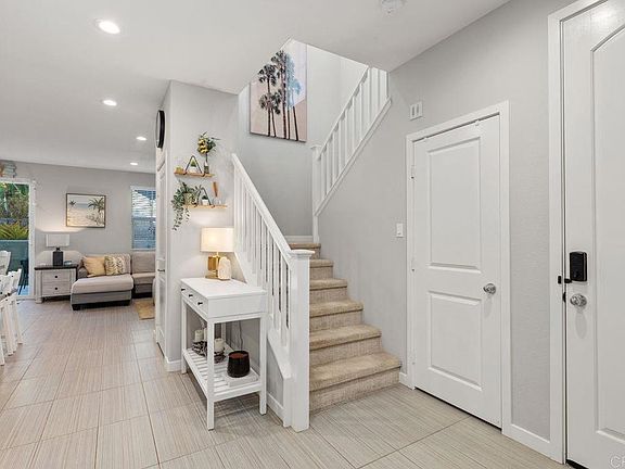 Looking for a truly turnkey home? This beautifully upgraded property with owned solar is nestled in a community brimming with amenities! Enjoy an inviting and consistent feel throughout with modern/neutral tile, luxury vinyl plank, upgraded carpet, and elegant white cabinetry. Four bedrooms and four full bathrooms (one bed and full bath on the first floor). The dreamy kitchen features stainless steel appliances, granite counters, subway tile backsplash, a contrasting island with seating, pantry, and gas cooking—perfect for entertaining or everyday living. Upstairs, the spacious primary suite offers a walk-in closet, a custom barn door, and a luxurious bath with decorative tile, dual vanity, walk-in shower, and soaking tub. Two secondary bedrooms (one with an en-suite bath and walk-in closet!) and a loft provide plenty of living space, while another bedroom downstairs (perfect for guests or as an office) offers convenience with a full bath nearby. Step outside to unwind in a private oasis surrounded by lush landscaping and fruit trees (figs, lemons, oranges, and blueberries). Additional highlights include stylish tile in the upstairs bathrooms, a 2-car garage with epoxy flooring and overhead storage, and under-stair storage inside.Live like you're on vacation with access to a neighborhood pool, spa, fire pit, BBQ area, and playground. Nearby attractions include the Historic San Luis Rey Mission, bike trails, Oceanside Pier, and trendy restaurants along Coast Highway and Mission Ave. Exceptionally maintained and move-in ready, this home is ready to impress!