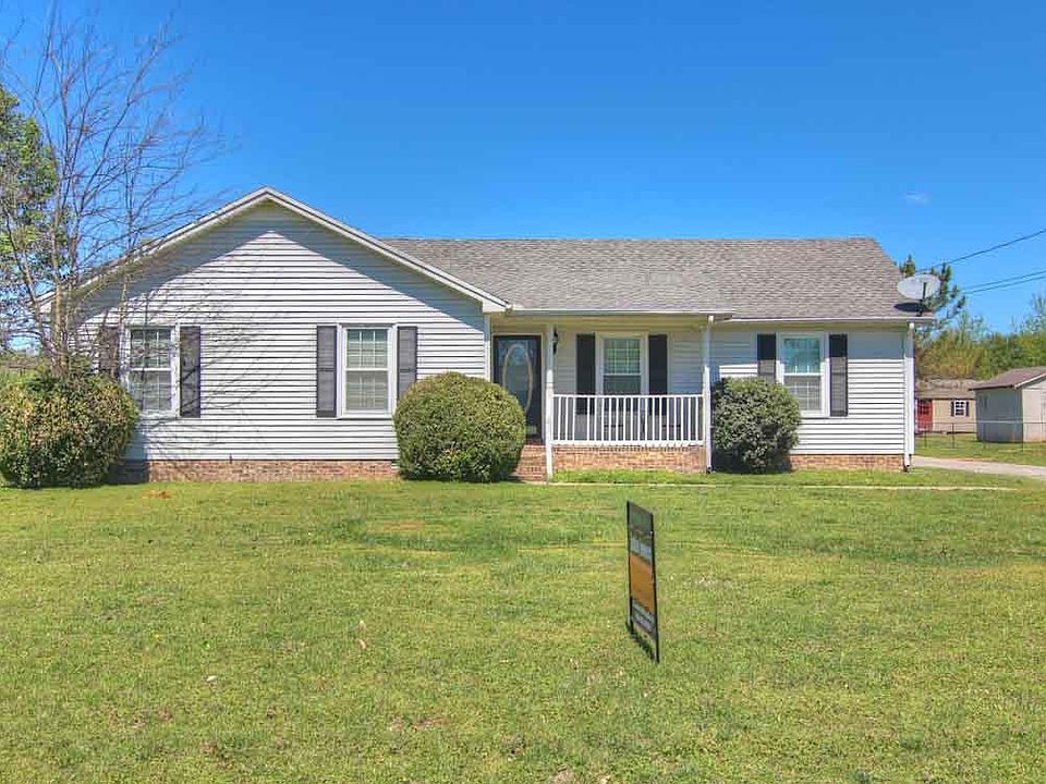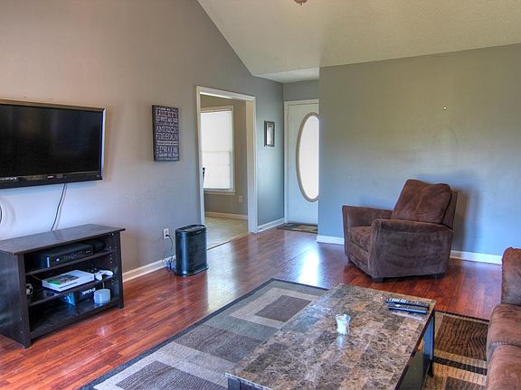 3/2 on just over half an acre. Close to shopping and interstate. Vaulted ceiling in living room. His/her closets in master bath. 1 car garage.
