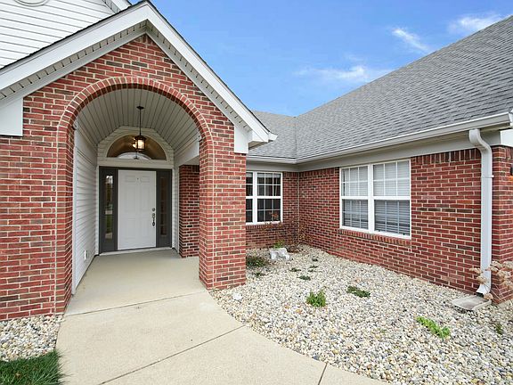 This full brick ranch at the end of a cul de sac is spacious and packed with features. The property boasts an arched covered porch and inviting landscaping. Inside, you'll find an open floor plan with a great room featuring a fireplace and cathedral ceiling, a formal dining room, and an eat-in kitchen with granite counters, white cabinetry, and access to a covered patio. The master suite includes a cathedral ceiling, a 9x6 walk-in closet, and a spacious private bath with double vanities, soaking tub, and separate shower. Outside, there's a covered patio, open patio, raised garage, and a shed for lawn tools. The home is move-in ready with fresh interior paint.