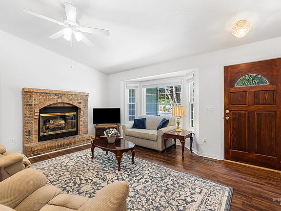 Rare find under $500K in the heart of East Boise with no HOA! Just minutes from the Greenbelt, Bown Crossing, Barber Park, and endless foothill trails, this single-level charmer offers unbeatable access to dining, shopping, and outdoor recreation. Thoughtfully maintained with big-ticket updates already done—including a newer roof, water heater and HVAC—offering peace of mind for years to come. Timeless brick accents pair with a fresh exterior palette and meticulous landscaping elevating the curb appeal. Inside, vaulted ceilings and abundant natural light complement the great room anchored by a cozy fireplace, flowing effortlessly into the kitchen with updated appliances, sink, and water line to the refrigerator. Step outside to the peaceful backyard retreat, surrounded by mature trees for added privacy. A spacious deck is perfect for entertaining, while the large grassy lawn and oversized storage shed add both function and charm. Don't miss this gem nestled in a prime East Boise location!
