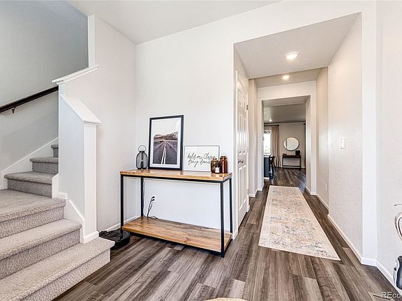 Welcome to this better-than-brand new Meritage home in the sought-after Tallgrass community. Cherry Creek schools! Immaculate 3 bedroom home with large loft and 2.5 baths. Built in 2019, this home features an attractive oversized covered deck on an easy-to-maintain lot backing to open space with trails and a play area! The covered front porch welcomes you onto the main floor with fabulous finishes, open floor plan and 9' ceilings. The eat-in kitchen is a dream with upgrades include oversized island, stunning granite countertops, tile backsplash, 42 white cabinets, large corner pantry and 5-burner gas stove. The bright and sunny dining nook features oversized sliding doors onto the massive covered deck perfect for enjoying year-round. The family room is bright and open with ceiling fan. Smart home features include a digital thermostat, a Ring video doorbell, smart lighting, sprinklers and garage door openers. Upstairs a flexible, spacious loft provides a storage closet, ceiling fan and mountain views! The main bedroom is appealing with ceiling fan, attached bath and sizable walk-in closet. Enjoy the spa-like main bath featuring quartz counters, updated sinks and lighting and oversized shower. Convenient upstairs laundry room. The hall bath provides an updated faucet and tub/shower combo with tile surround. Additional bedrooms feature updated lighting, upgraded extra windows and more mountain views! Unfinished basement provides flexible space for whatever you desire. Nothing for you to do except move in and enjoy! Welcome Home!** Please remove shoes or wear booties provided. Thank you.**