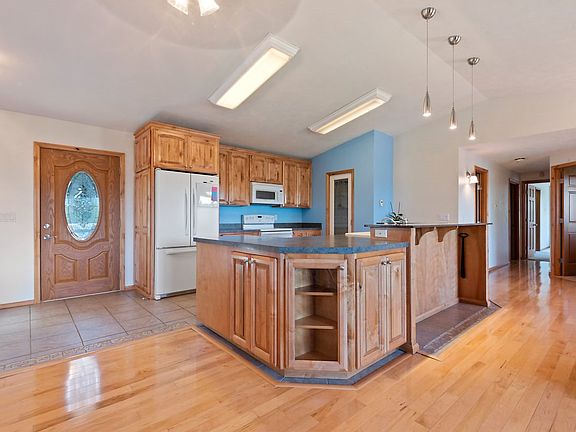 This beautiful 5 bed, 3 bath home offers incredible views and 1.61 acres. Enjoy relaxing on the deck or host family and friends! Spacious rooms and updated bathrooms. Hardwood floors, lots of natural lighting and updates throughout. Porcelain tile into the kitchen with vast rustic maple cabinetry and plenty of storage! This home also features a large walk in pantry and a charming breakfast bar with additional storage and a built in sink. Not only a large 2 car garage, but a 24 X 30 heated shop!!