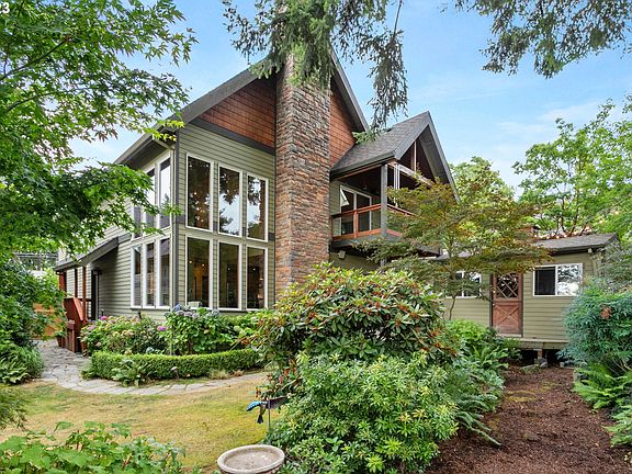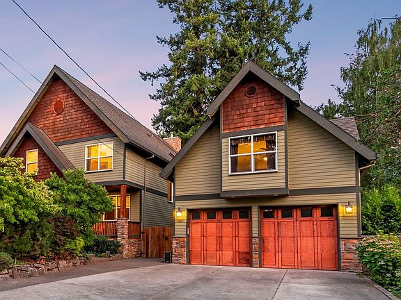 Impressive 4 BR, 2,750 SF Craftsman with Main-Level Primary Suite & Separate ADU on Quiet Setting in Fantastic Hayhurst Neighborhood! Nestled in the trees, you'll fall in love with the generous 0.26-acre lot & enchanting backyard! A charming, separate 700 Sq Ft ADU/apartment above detached garage provides extra income & includes a kitchen, eating area, living room, full bath, big walk-in closet, gas fireplace, hardwood floors, skylights, sliding door to covered deck, heating & A/C & its own washer & dryer. The main home features a STUNNING Great Room with a large fireplace w/Columbia River basalt facing, vaulted ceilings & floor to ceiling windows framing the remarkable backyard views! Enjoy cooking in the beautiful Kitchen which includes stainless steel appliances, gas range, butcher block island, BRAND NEW: quartz countertops, tile backsplash, and cabinet door fronts. The relaxing Primary Suite on the main level features 9.5 ft ceilings, large walk-in closet & door to a patio. Attached spa-like bathroom includes a luxurious, free standing soaking tub, a tile & glass walk-in shower & double sinks. Office on the Main includes a large window & French doors that create a great space to work from home. 2nd floor, you'll find expansive, vaulted Bonus Room, 3 spacious & vaulted Guest Bedrooms, 1 full & 1 half baths. Step out to the covered deck from the Bonus Room to enjoy the peaceful views of this park-like backyard! The magical backyard features meandering stone pathways, hammock area tucked in the trees, lovely stone patio & sitting area, bubbling hot tub, spacious deck area, tool/garden shed, raised garden beds, and a terrific shop for all your projects! Other great features include big laundry rm w/extra storage, lots of closets & storage, hardwood floors in most areas, custom wood trim, vaults, skylights, heat pump, 3 heating & cooling zones, tankless H2O heater, SmartHome features, extra insulation, 2-car oversized garage. Approx 6 miles to Portland. [Home Energy Score = 5. HES Report at https://rpt.greenbuildingregistry.com/hes/OR10220773]