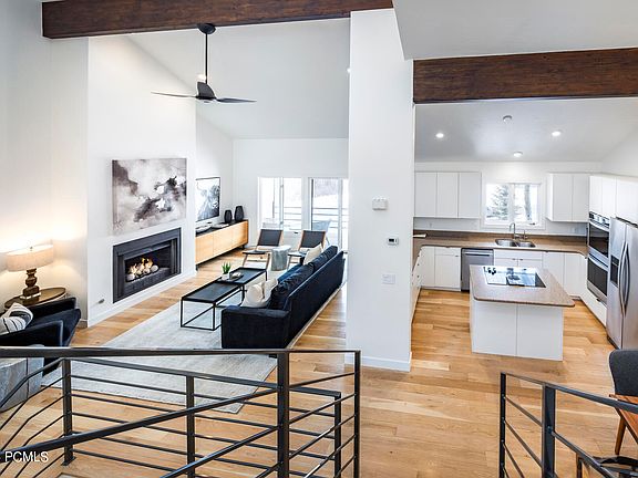 Experience the epitome of mountain living in this beautifully remodeled end row townhome, nestled in the sought-after and tranquil Jeremy Ranch neighborhood. With seamless access to Salt Lake City and Kimball Junction while residing in the Park City school district, this residence offers a harmonious blend of luxury and practicality. Immerse yourself in the sophisticated charm of vaulted ceilings, exposed wood beams, and wide plank hardwood floors, complemented by contemporary upgrades throughout. Recent enhancements include a tankless hot water heater, reverse osmosis water filtration, stainless steel appliances, granite and quartz countertops, and wool carpeting. Marvel at adjacent open space and mountain vistas, including Woodward ski run views from two separate covered decks, and a serene pond frequented by local elk, moose, and deer. Walkable access to the fourth tee of the Jeremy Ranch golf course with adjacent open space and trails, further adds to the array of recreational possibilities. A built-in two car garage offers ample room for bikes, ski racks, and gear storage. Perfectly situated for enthusiasts of Park City's vibrant outdoor recreation scene, this turnkey haven beckons you to embrace unparalleled mountain living. Your alpine retreat awaits.
