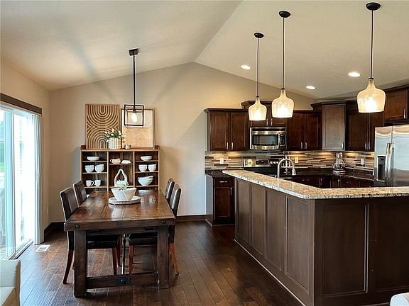 !This stunning property is on a coveted cul-de-sac and boasts an impressive array of features. Built in 2014, the beautifully landscaped corner lot spans .29 acres. With approximately 2,500 finished sf, this home offers a perfect blend of elegance, comfort and warmth. The main level showcases an inviting open floor plan with vaulted ceilings. The kitchen features granite counters, large island, recently upgraded double oven, and soft-close cabinets. The dining area opens to an east-facing deck, and the living room is enhanced by a cozy fireplace. The split bedroom plan separates the spacious primary suite, complete with a lighted tray ceiling, double vanity bath, custom tile shower, and walk-in closet. A convenient pass-through leads to the mudroom/laundry and garage access. Two additional bedrooms and a full bath complete this level. The finished lower level offers a spacious family room equipped with surround sound and a media closet, a wet bar, and a walkout patio. There's also a fourth bedroom and full bath. A large unfinished area will provide plenty of storage space. The 3 car garage has an overhead storage rack for added space. A new roof was installed in October 2021, safeguarding your investment for years to come. This exceptional home blends modern design, functional spaces, and desirable amenities. This quiet Urbandale community is located in the new Waukee Northwest high school district. Downtown and Jordan Creek are only minutes away. See it for yourself today!
