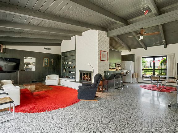 MIDCENTURY ENTHUSIASTS! Unique 2 bed, 2 bath w/gorgeous terrazzo flooring. Mostly original w/open, vaulted plan, fireplace. Generous bedrooms w/large greenhouse on oversized lot. Make this your own!