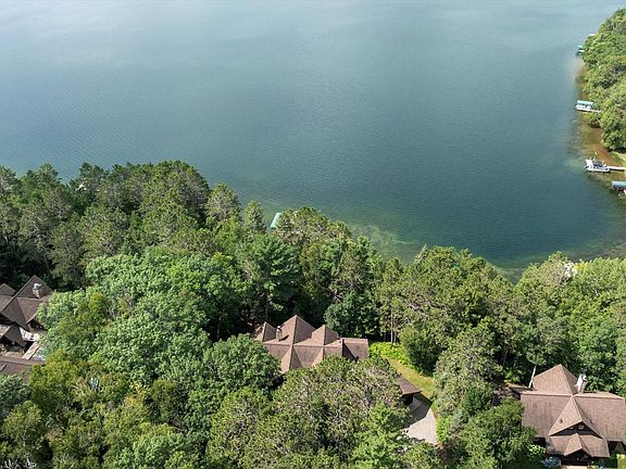 Make this spectacular Lands End built 5-bedroom 5-bath Thunder Lake home your private retreat from the modern world. This Up North feel-home is nestled on a 3.24-acre lot, boasting 221 feet of excellent sand frontage, stunning sunset views, flagstone walkways, rip-rap shoreline, a lakeside fire pit for gathering with friends under the stars, and a back lot adding additional privacy. The minute you walk into this well-appointed home, you see the impressive floor-to-ceiling stone fireplace, hardwood floors, vaulted knotty pine ceiling, and a lakeside wall of glass that lets plenty of sunshine into the room. The lakeside dining room adjoins the gorgeous kitchen, which features top-of-the-line stainless steel appliances and an oversized pantry that you will love. Sit back and relax in the fabulous lakeside porch, which features a vaulted wooden ceiling and stunning lake views. Retire for the day in the lakeside primary bedroom suite that has a walk-in closet and a luxurious bathroom with dual sinks, a soaking tub, and a walk-in shower. The main level offers the one-level living you are looking for, as it includes a laundry room with a sink, custom cabinetry, and room to hang your laundry. Gather with family in the walk-out lower level, as it features a kitchenette with a sink and bar seating, an oversized family room with a floor-to-ceiling stone fireplace, an additional bedroom for guests, and a bathroom with a custom tiled walk-in shower. The upper level has a loft that overlooks the living room, two bedrooms, and two bathrooms. The attached two-stall insulated garage and detached two-stall heated and insulated garage provide storage options. The bonus room above the detached garage is unfinished, so it is waiting for your finishing touches. Soak in the lakeside hot tub after a long day or share a meal with family on the lakeside oversized deck. This property is situated close to the Chippewa National Forest and Land O' Lakes State Forest to enjoy Towering pines, fish-filled lakes, and miles of hiking and ATV trails nearby. It is located between Remer and Outing, so you can go shopping, golfing, and more. This serene and picturesque property is being sold furnished with rugs, so it will be ready for you to start making incredible memories of your time on Thunder Lake, taking in spectacular sunsets at the dock, going on excellent fishing adventures, and boating to a local restaurant for dinner. There are so many reasons to come and see this one. Schedule your private shoreline tour this weekend and experience the charm and tranquility of this remarkable property firsthand.