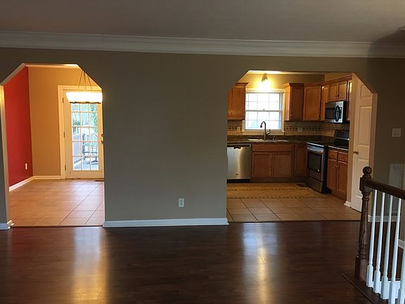 Split foyer with 4 bedrooms, 2.5 baths with large bonus room/den. Features laminate flooring in main living area and hallway and carpet in bedrooms. Upstairs features living/dining/kitchen combo with stainless range, microwave & dishwasher and pantry, 4 bedrooms, 2 baths and large deck off of dining space. Downstairs features large ceramic tile in the bonus room/den with fireplace, wet bar and entry to downstairs patio. Large double garage with automatic openers, laundry hook-ups, wet sink and fenced back yard. Gas central heat & gas hot water. No Section 8. Owner must approve all pets.