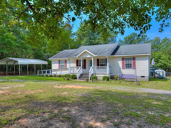 NO HOA!!! Desirable location and acreage! Country charm with convenient accessibility to town. This countryside ranch home is nestled on one acre and includes a separate parcel with 3 additional wooded acres. Workshop and additional outbuildings remain for the new owner to make it their own! This gem of a property has a long driveway with mature landscaping that delivers you to your private oasis. There is a freshly painted, slip free, ramp outside the front of the home. A covered front porch - perfect for a rocking chair and listening to the birds. It is a bright home with an abundance of natural lighting. There are ceiling fans throughout. This lovely home has charm and character. The ensuite primary bedroom is generously sized and features a walk-in shower. There is a full sized bathroom with a bathtub for the two additional bedrooms. This split / open floorplan makes the most of the 1300 square feet. The kitchen offers plenty of counterspace, an eat in dining area, and access to the four seasons air conditioned sunroom. The roof was replaced on the sunroom in 2024. Sunrise on the front porch and breathtaking sunsets on the back porch. There are several outbuildings, all of which stay for the new buyer. The workshop has electricity. There is also a chicken coop, greenhouse, and an additional storage shed. The backyard is fenced - this includes all outbuildings. The carport is close to the home for convenience and will stay for the new buyer. Washer and dryer convey. Located in the county, but does have city water. Solar panels provide extremely reduced electric bills. Minutes to charming downtown Aiken, Augusta, SRS, and Aiken Regional Medical Center.