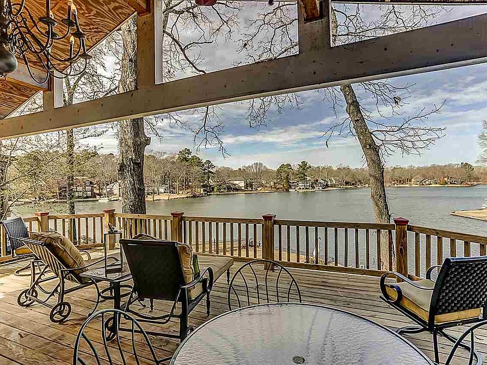 Rare find on private Garner Lake! A true lake home with all the charm and just minutes from the city. This 4 bedroom, 3 bath home has been renovated throughout. Gorgeous wood floors and cabinetry, two master bedrooms, 3 living spaces, 2 decks! Absolutely stunning lake views from all rooms and plenty of space to park your boats. This home has been exceedingly well kept. This private lake community offers private concerts, fishing tournaments, etc. Square footage and dimensions are approximate.