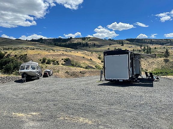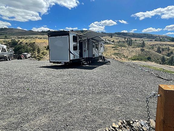 Completely developed RV or home sight in Deer Meadows WA. Septic system in for 3 bed home with 50 and 200 amp service. Fully landscaped with extensive terracing and rockeries with weed barriers for low maintenance. Level site completely covered with road mat and 3 inches of gravel. You can drive completely around site even with 2 large RVs and all the toys. Property sits on a knoll and has a 360 degree view of Lake Roosevelt, Golf course {in the works}, Sunday Bay and Canyon. South end of property has large peninsula with unobstructed views overlooking Sunday Bay and the Canyon. Amazing spot for Gazabo or whatever. This property was developed last summer with lawns started last fall. Abundant Deer, Turkey and Quail on their way in and out of canyon every morning and evening. This site is turn key. Pull in and hook up to one of the two RV spots and enjoy. Health issues sadly forces sale. 509 899 1396