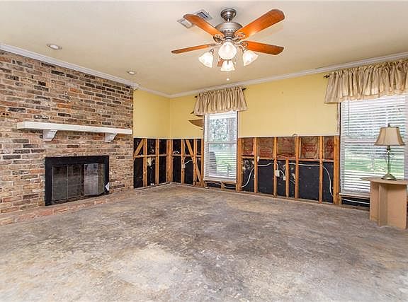 Great potential to make this home into your dream home on over an acre of lovely park-like grounds; partially gutted Acadian style home; spacious open plan living room with brick fireplace opens to large kitchen w/plenty of cabinets & counter space; large master with ensuite; large covered carport and patio great for outdoor living & entertaining; easy access to the Interstate!