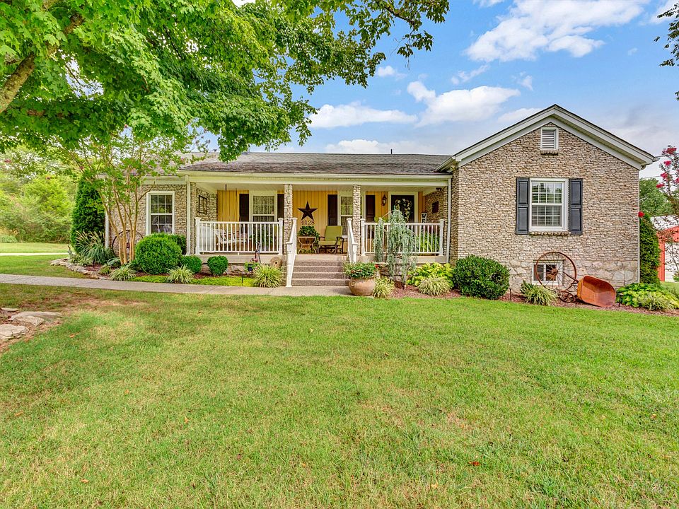 This mid-century stone cottage looks like it just fell out of your favorite issue of Southern Living! Rich in character and charm, and nicely updated. 2 acres of property, large deck and pergola for outdoor entertaining, unfinished basement, and a super-nice 2 car garage/studio/workshop with carport. Sold "AS IS".