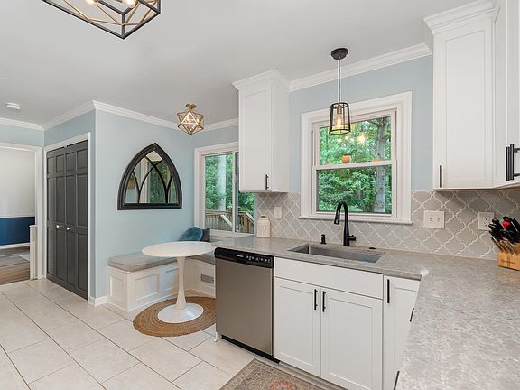 Just 10 minutes from downtown Apex and 15 minutes from Holly Springs Towne Center, this beautifully updated home is the perfect place to call home. The interior of the home has been recently renovated with high-quality materials and finishes. The kitchen has been completely remodeled with new cabinetry, quartz countertops, stainless steel appliances, and luxury vinyl plank (LVP) flooring. There is also a built-in bench with storage in the eat-in kitchen. The formal dining room is perfect for hosting dinner gatherings. The primary bathroom has granite countertops and a walk-in closet. The backyard is huge and fenced in, making it the perfect place for activities and relaxing. There is also an extended driveway with enough space for two cars and a one car garage with built in shelving for added storage.