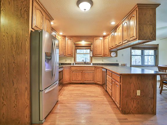 Don't miss this stunning, two-bedroom two-bath home on nearly an acre in Pillager! This location is perfect just on the outskirts of town and yet still only minutes to town and 10 minutes to the Baxter/Brainerd area. This home features main floor living with laundry on the main level, a large living room, a gas fireplace, a beautiful deck off the dining room, tons of cabinets in the kitchen giving you ample kitchen storage, hardwood floors, custom wooden cabinetry, stainless steel appliances, a large primary bedroom, a detached heated and insulated oversized two stall garage, and a beautifully landscaped yard. Schedule a showing today!