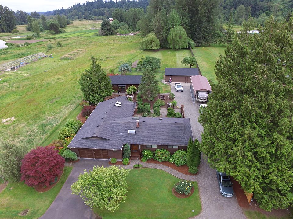 Over 4,300 Total Square Feet of Rambler Home, Storage, and Garage space. Open Concept Floor Plan. Beautiful and Rare Valley Area w/ Acreage property, only minutes from downtown Tacoma and Puyallup (easy I5 and 167 access). Recent Remodel. Heat pump, New Carpet, New Roof. Peaceful, & tranquil views of Mt Rainier. Rich Soils and Garden space with blueberries, raspberries, apple, pear, plumb trees. Must See separate 896 sq ft "Storage House". AND the 864 sq ft 3 car Detach Garage/Shop. RV parking.