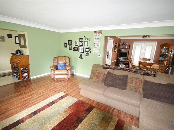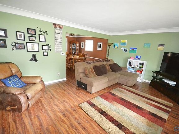 WELL TAKEN CARE OF WEST TOLEDO HOME! MARBLE ENTRY. LIVING ROOM & DINING ROOM W/ COVE CEILINGS. KITCHEN W/ UPDATED APPLIANCES & NEWER COUNTERTOPS. FAMILY ROOM W/ CROWN MOLDING & WOOD BURNING FIREPLACE. MASTER SUITE W/ COVE CEILING & CEILING FAN. THREE ADDITIONAL BEDROOMS W/ CEILING FANS. BASEMENT REC ROOM W/ WET BAR. 2 PATIOS OVERLOOK LARGE YARD W/ 10 X 20 OUTBUILDING & CONCRETE BASKETBALL COURT!!