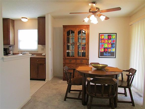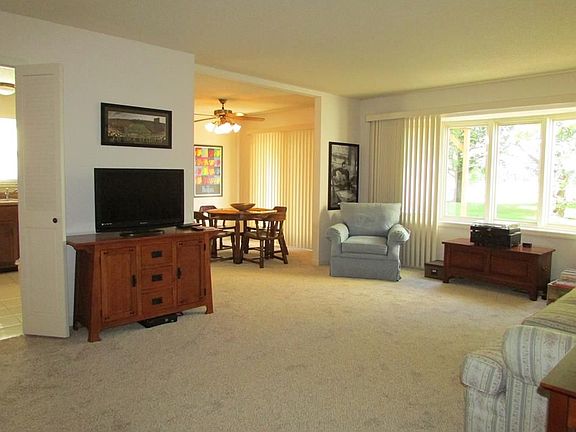 Very attractive main floor condo with brand new carpet, updated bath, ceramic tile floors in the bath and eat-in kitchen. Formal dining room with sliders to the patio. Large living room features a bow window that looks out to the wide open space of Twin Pines Golf Course, which gives the feeling of being in the country. 2 Bedrooms with the large master bedroom having a walk-in closet. All appliances are included. Some windows have been replaced. New furnace and central air will be installed June 23rd. 1 Car attached garage. There is a $250 startup association fee and $100 monthly fee. No pets. $97,500. This condo will not last, don't lose out.