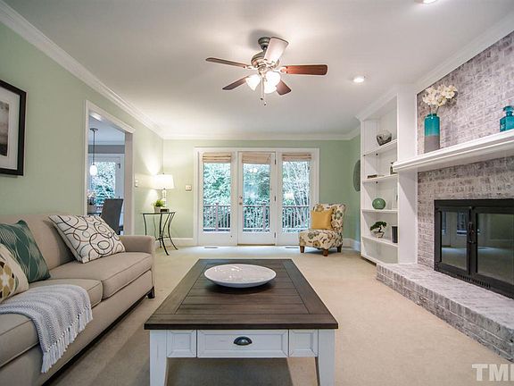 Desirable Westlake Village home w/short walk to Lake Lynn. New exterior paint. Large kitchen w/granite countertops. Eat-in breakfast w/large windows. Dining room w/hardwoods & bay window. Large living room w/fireplace & built-in shelves. Opens to large private deck w/retractable awning. Master bedroom w/walk-in closet & renovated bath. Renovated hall bath. 3rd floor bedroom/bonus room & walk in attic storage. Convenient location to RTP, Crabtree, 540/40. $5000 allowance for aging HVAC.