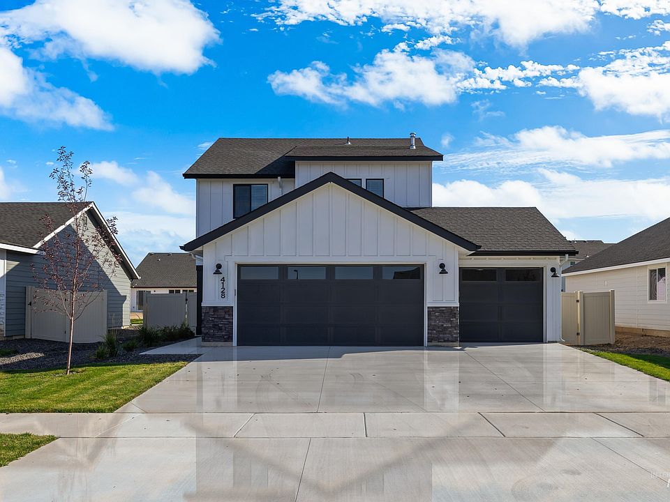 Step into this fresh, better-than-new home packed with over $8,000 in custom upgrades! The chef-inspired kitchen is a showstopper, featuring quartz counters, a custom tile backsplash, a farmhouse sink on a large island, and soft-close cabinetry throughout. The thoughtful details continue with custom built-ins for shoe storage and upgraded carpet and padding on the stairs and in the bedrooms, ensuring every step feels luxurious. The owner's suite offers dual vanities, a walk-in closet, and sleek sliding glass shower doors. Spacious secondary bedrooms, an upstairs laundry room with extra storage, and a hall closet provide practical solutions for every living situation. The three-car garage is EV-ready, perfect for charging your Tesla or electric vehicle, while the blank-slate backyard awaits your green thumb and creative landscaping ideas. Home includes an almost new fridge/washer/dryer! Nestled near a neighborhood park, playground, and miles of walking paths this neighborhood is one you don't want to sleep on!