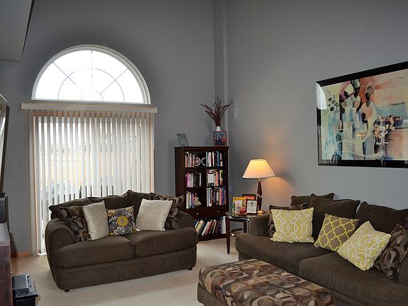 Walk through your front door into a Two-story entry and Living Room with beautiful water and nature views. Unit has fresh grey paint, open floor plan, two bedrooms and 1.5 baths, second floor laundry and 2 car attached garage. Newer sliding glass door to patio with views of the pond. All appliances stay with the unit. Spacious master bedroom with great closet space. Generous sized additional bedroom. Unit has new A/C 2018 and hot water heater in 2014. Unit is close to Van Horn Woods with playground, dog park, walking path, gazebo and pond. Easy access to shopping and expressway. Highly desired area. Least expensive in the area. Make your offer today!