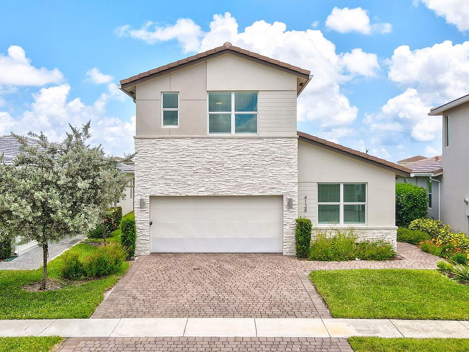 Welcome home to the very desirable gated community of Veleiros at Crystal Lake. Enjoy the energy saving benefits of a Solar home with EV charger. This Cisne model features two primary suites! Open floorplan with a dream kitchen of quartz countertops, wood shaker cabinets, stainless steel appliances and upgraded luxury vinyl flooring in all of the bedrooms. On the main level, you will find 3 bedrooms, 2 full baths, and a laundry room. Through the primary suite, is a spacious en suite with duel vanities and a massive walk in closet. Upstairs, discover the private second primary suite with large walk in closet and full bath. Fenced yard with room for a pool overlooks a peaceful lake. Resort style pool, fitness center, social room with kitchen, playground, on site management and more!