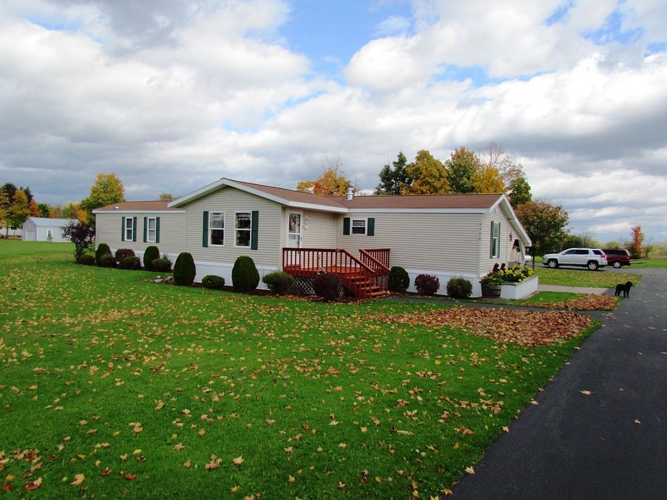 Welcome to majestice Village of Turin, NY. Home to Snow Ridge Ski Area, Wetstone Gulf State Park and Snowmobile (C7B trail) and ATV trail systems. This 2000 Mobile Home offers 3 bedrooms, 2 bathrooms a second living room with a supplemental pellet stove and an extra heated storage room. Central Air!! Now lets talk garages!!! One workshop with furnace and water, another two stalls with garage door openers andddddd a duel door (ride in ride out), wood floor with electric receptacles that line up with your sleds (up to 8-10 sleds) built in 2018, Snowmobile riders dream! All of this sets on 3 picturesque acres.