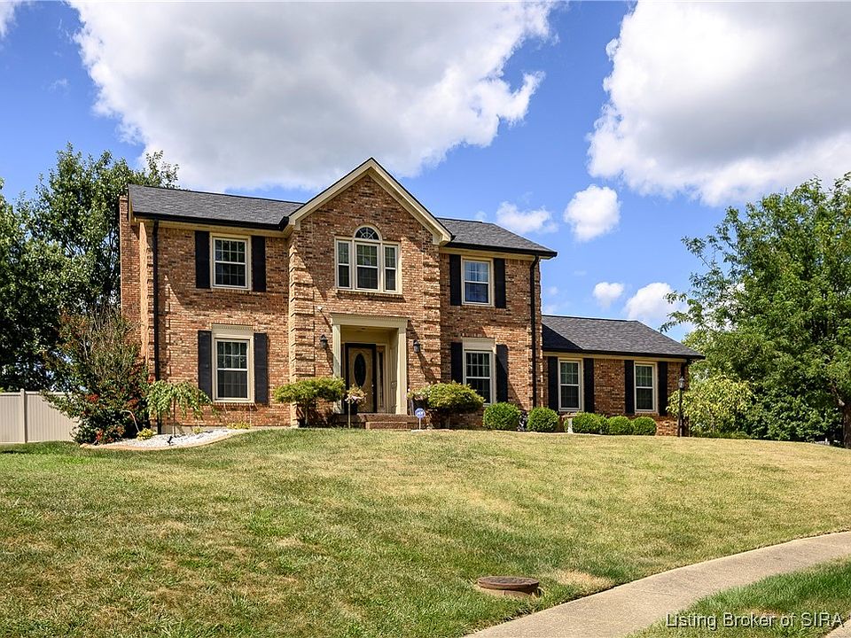 A true pride of ownership by only its 2nd owner in a very desirable area of New Albany! Conveniently located between Grant Line and Charlestown Rd with easy access to I-265, this one checks a lot of boxes. Situated on a 0.41 acre corner lot with a spacious fenced-in backyard, a covered patio area, uncovered deck area, koi pond with water feature, shed, and still plenty of space! Inside, you will find over 3,330 sq ft of living space giving everyone a little room to breathe! The updated eat-in kitchen has new appliances (2024), and the cabinets, countertops, and flooring have been updated as well. You’ll love the open feel as it flows to the family room with gas fireplace but might love the SUNROOM even more! GE heat/air wall unit to use this space year-round and soak up plenty of sun light. There is also a formal dining and living room to break away or use for family/guest dinners. The 2nd floor offers more functional space by having all 4 bedrooms, 2 baths, and the washer/dryer upstairs, so you’re not hauling laundry up and down. The primary suite offers a walk-in closet, vanity/makeup area, and a separate area for the tub/shower, toilet, and another sink. The 2nd full bathroom was recently updated with a double vanity and tile floors. The finished lower level gives you even more living space with a family room, office/rec room, ½ bath, and storage area. Oh yeah, there’s a brand-new roof and gutters! So much to offer in an ideal location of Floyd Co.