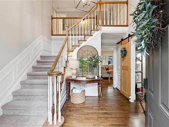 Welcome home, where every detail has been thoughtfully designed with style and function in mind. From the moment you step inside, you’ll be wowed! The main level features rich hardwood floors, Pella doors, and high-efficiency double-hung windows that flood the space with natural light. The updated kitchen is a true showstopper with professionally refinished cabinets quartz counters, a butcher block island, stainless steel appliances, a 36” 5-burner gas cooktop, upgraded vent hood, and designer lighting. Shiplap accents the eat-in kitchen and a refreshed laundry room with custom finishes add charm, while the updated half bath shines with a new vanity, fixtures, and lighting. Upstairs, enjoy all new carpet throughout. The primary suite boasts painted vanities, updated tile, new lighting, designer wallpaper, and built-in closets. Secondary bathrooms have been fully updated with new tile flooring, vanities, fixtures, lighting, and vertical shiplap detail. The finished basement is an entertainer’s dream—featuring new LVP flooring, built-in cabinetry with butcher block tops, a stainless steel bar sink, brick tile backsplash, custom accent lighting, and even a built-in beer tap. A full bath and storage with built-in shelving complete this space. Step outside to a backyard oasis with wood deck, leveled yard, professional landscaping, retaining walls, stone walkway to a cozy fire pit, and a freshly painted shed with electricity and plumbing. The new 5ft split rail fence provides both beauty and privacy. Additional features include a freshly painted exterior and access to an optional swim and tennis community with clubhouse, playground, and pickleball. This home is move-in ready with designer upgrades at every turn—perfect for buyers looking for luxury, function, and lifestyle in one incredible package! Agent/Owner